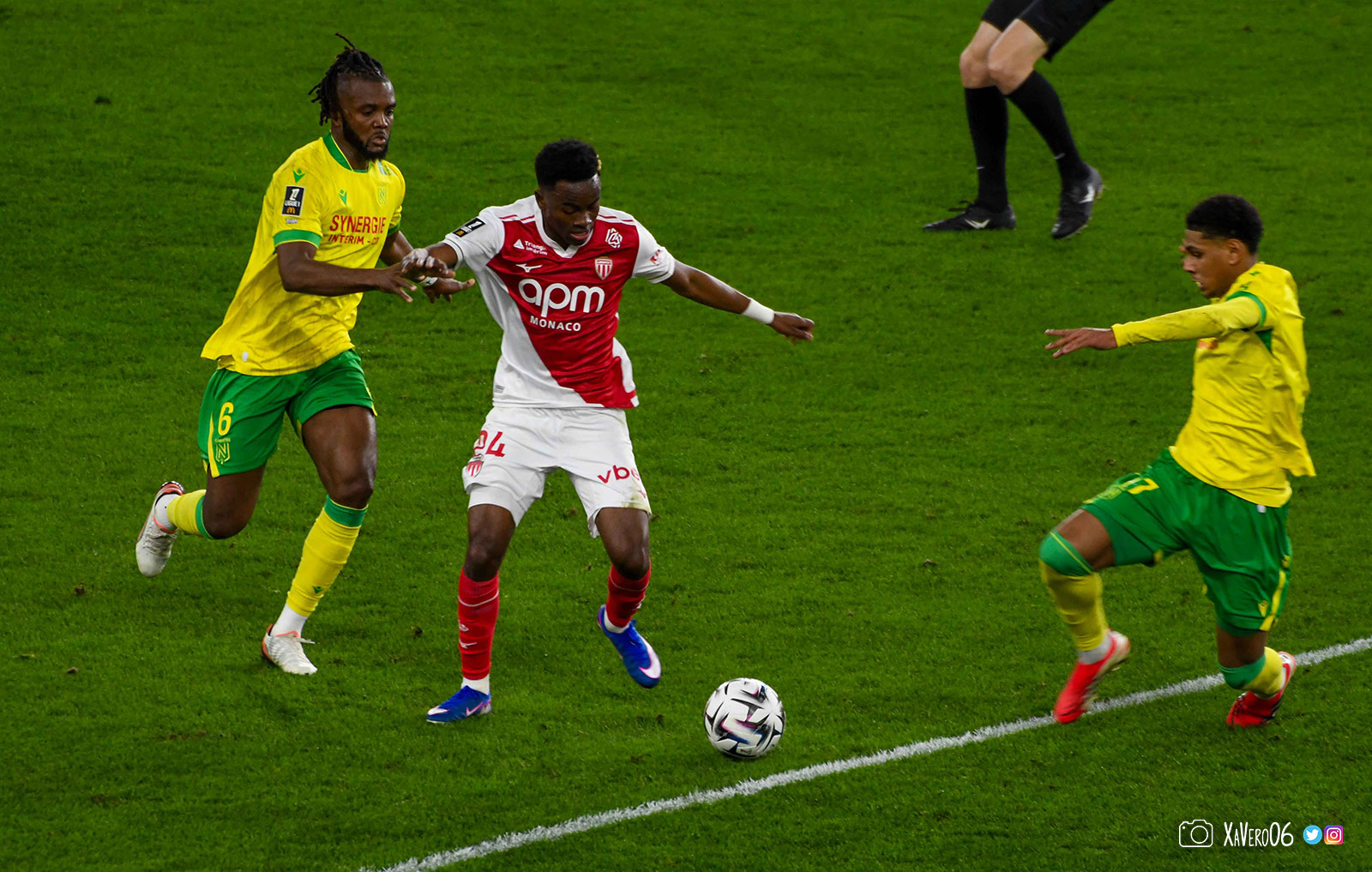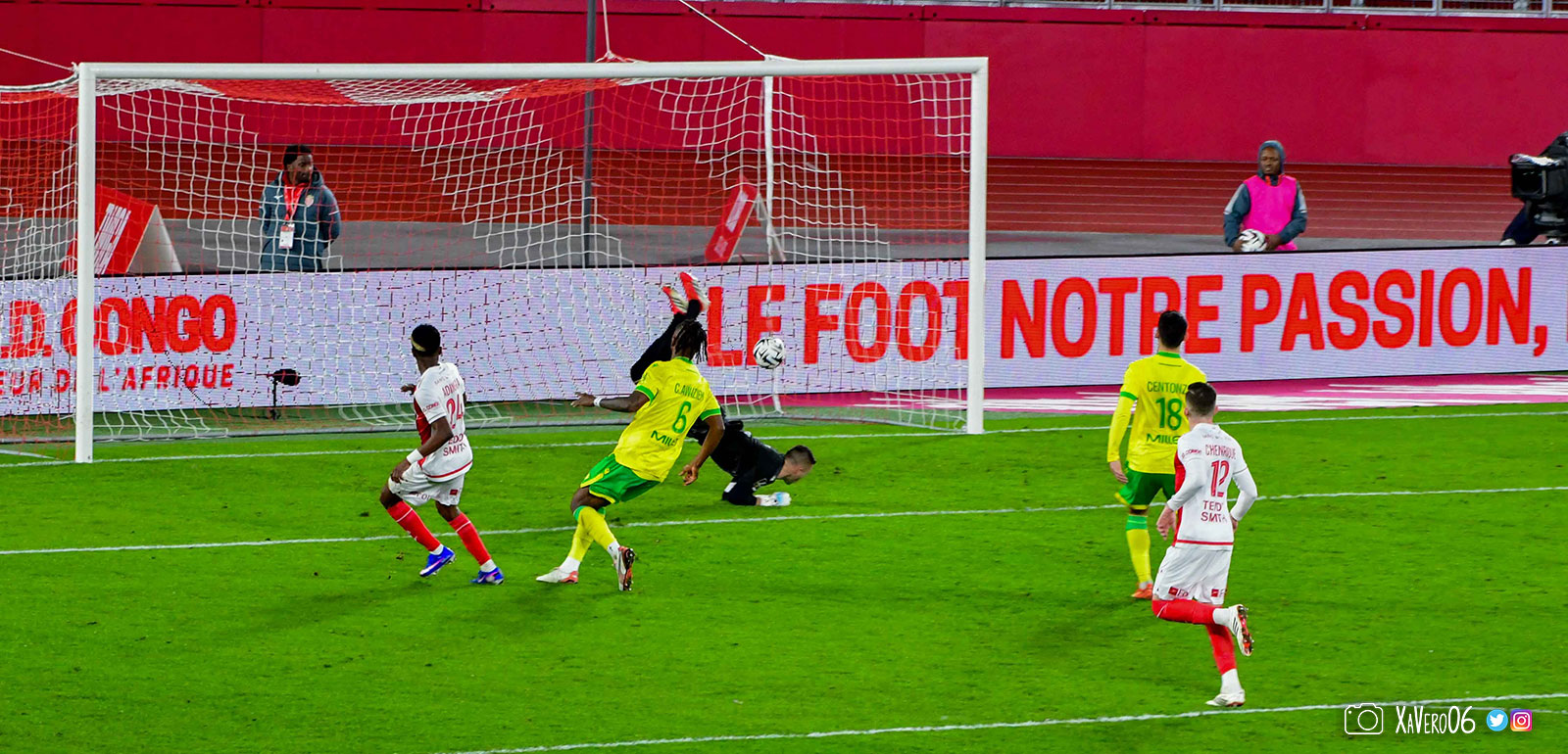 Les esprits monégasques s'échauffent. Déjà avertis deux fois alors que les nantais n'en ont toujours pas reçu, Camara reste au sol après une intervention rugueuse de Cozza sur sa cheville gauche (51e) et l'arbitre laisse jouer, jusqu'à une grosse faute de Vanderson qui s'en sort bien.