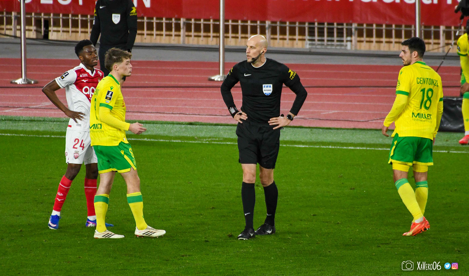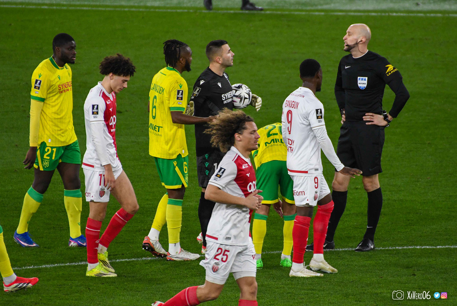 La frustration monégasque avec l'arbitrage continue, avec un nouveau carton pour Teze pour sa première faute (82e), Mr Wattellier oubliant une simulation dans la surface de Ganago, entre autres.