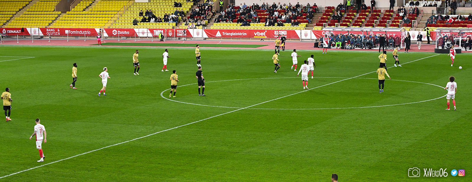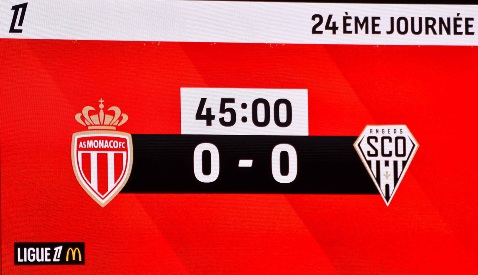 Et la rencontre débute avec le ballon dans les pieds monégasques qui font face à un bloc angevin regroupé dans son camp, qui attend le contre.