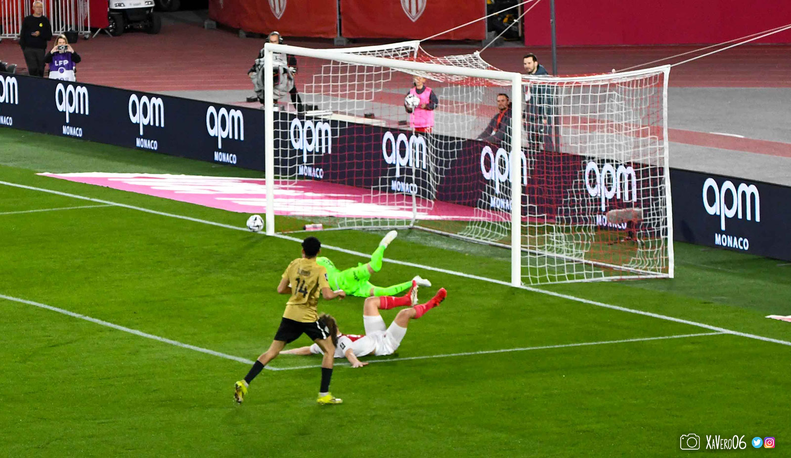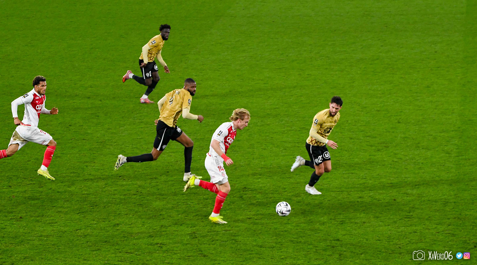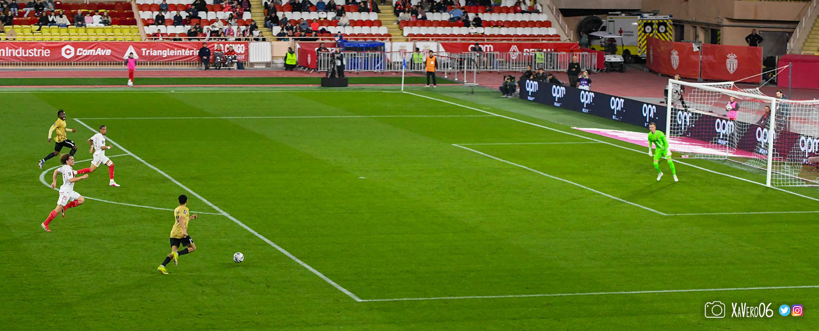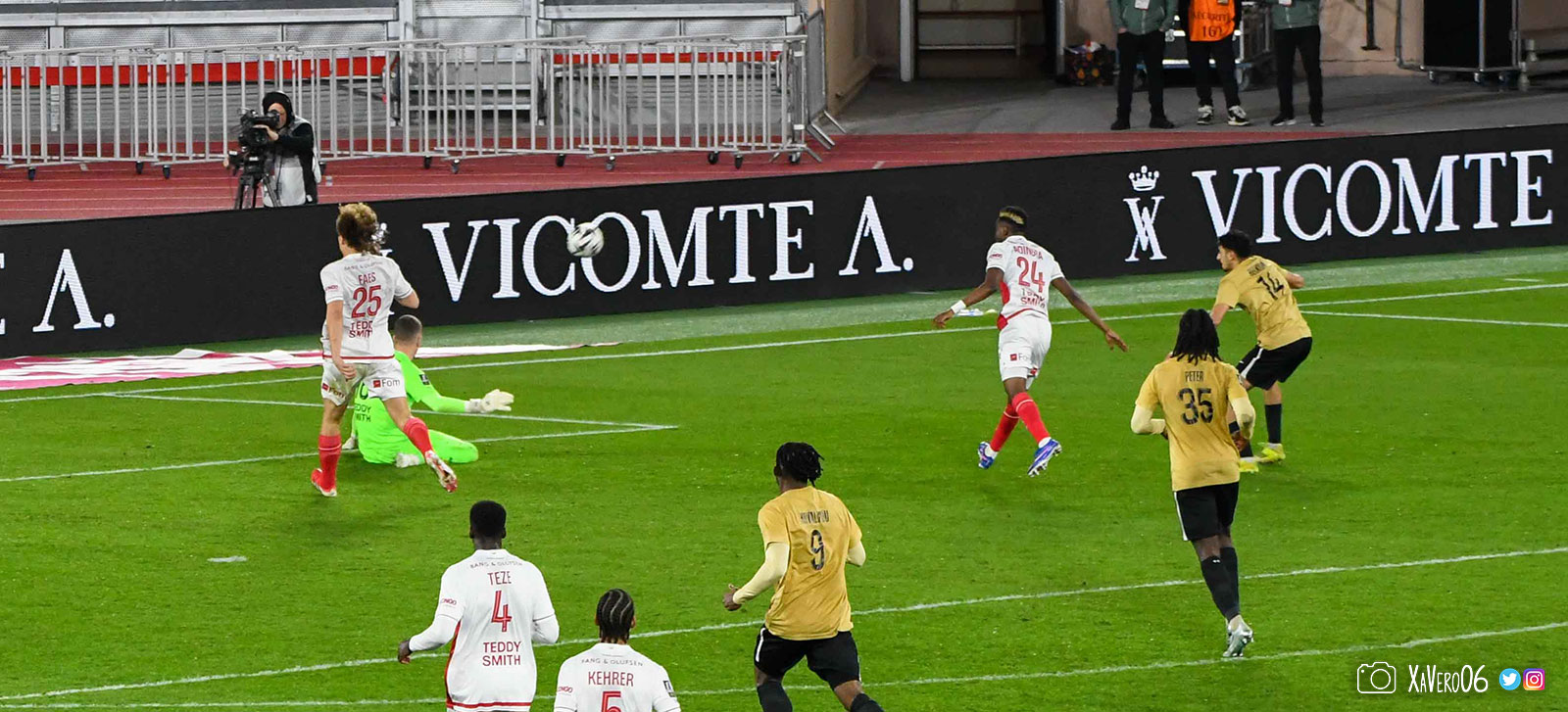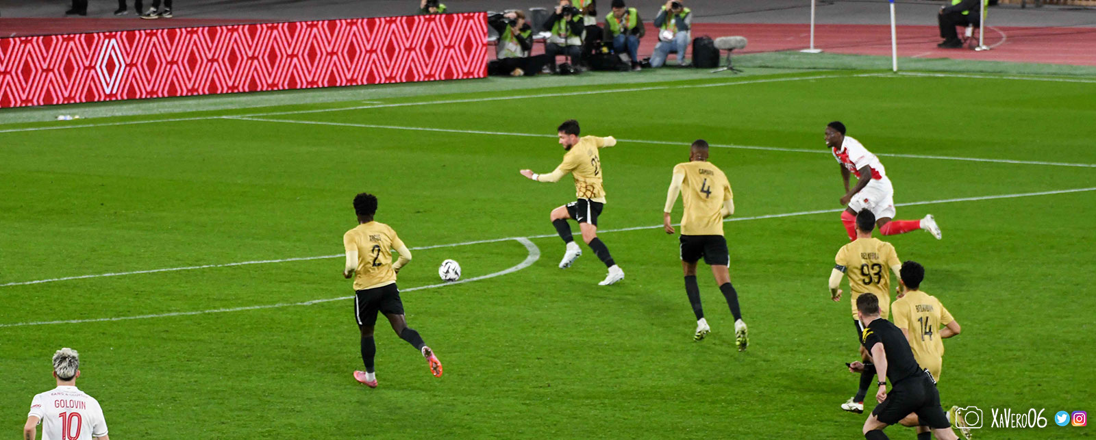 Corner monégasque, raté par Camara. Sur sa deuxième chance, Pona boxe le ballon et Raolisoa récupère et accélère côté gauche, bloqué par Golovin le long de la touche, mais il revient sur son pied droit et centre dans l'axe pour Belkhdim, oublié au marquage par Adingra qui lui court 3m derrière.