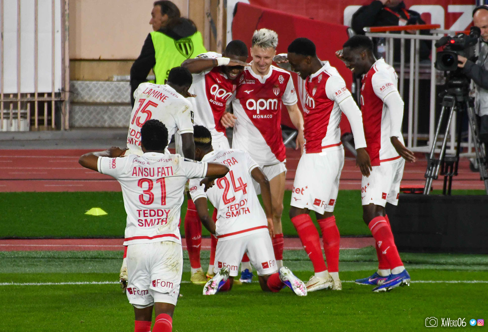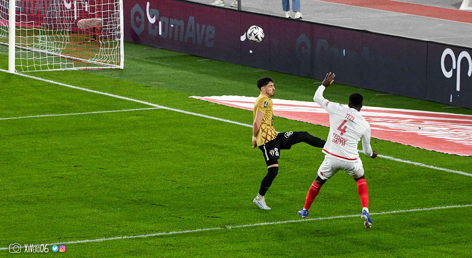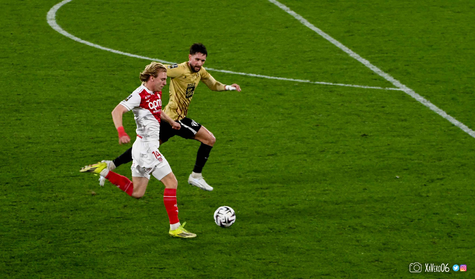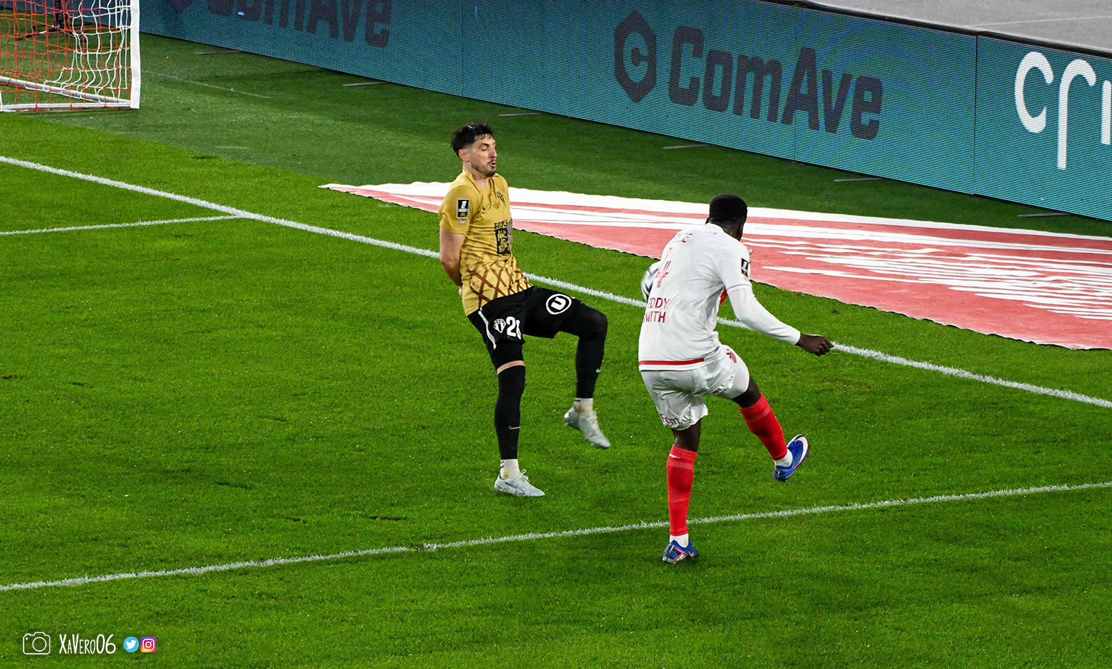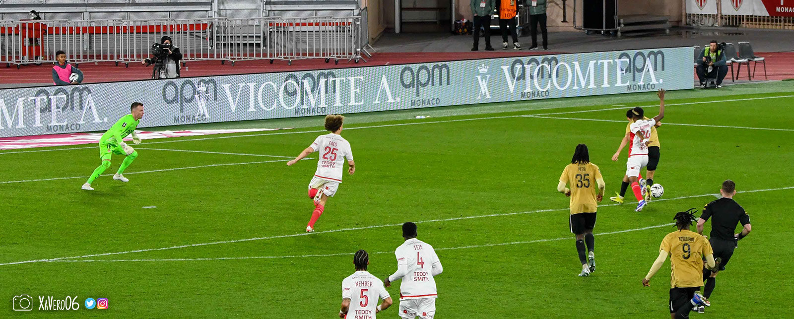 Corner monégasque, raté par Camara. Sur sa deuxième chance, Pona boxe le ballon et Raolisoa récupère et accélère côté gauche, bloqué par Golovin le long de la touche, mais il revient sur son pied droit et centre dans l'axe pour Belkhdim, oublié au marquage par Adingra qui lui court 3m derrière.