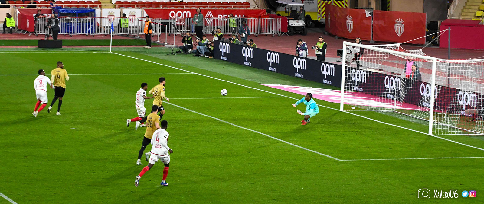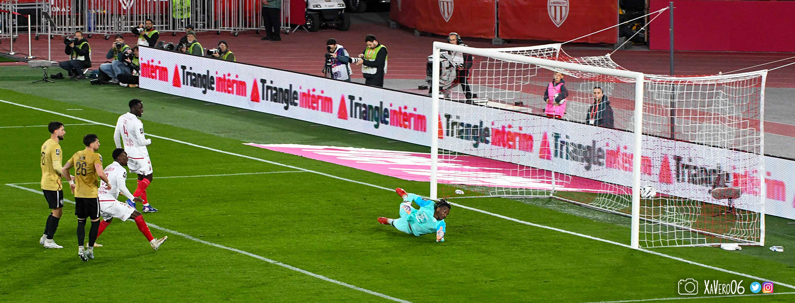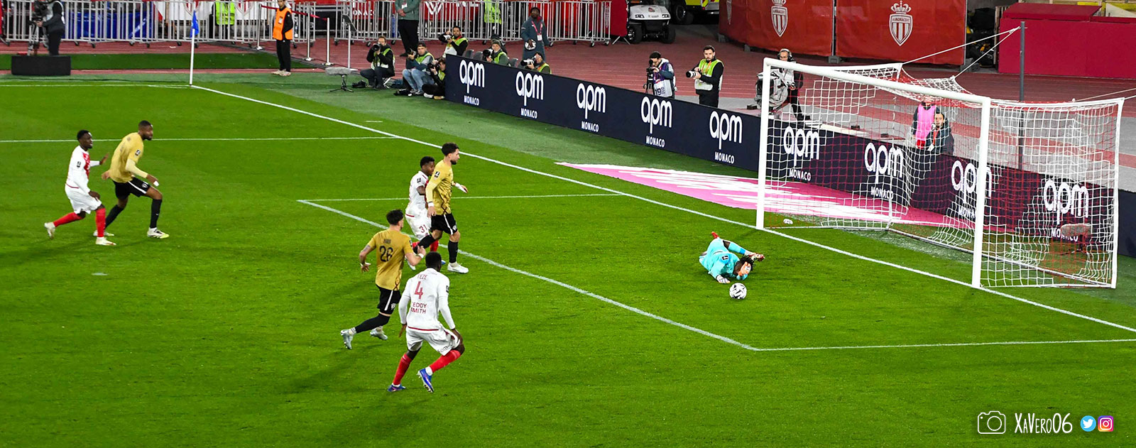 Au contraire, Monaco ouvre le score sur une tête de Folarin Balogun repoussée par Camara dans les jambes de l'américain qui prend la direction du but où était Pona, mais le ballon est encore dévié par le bout des doigts de Camara pour tromper son gardien (1-0, 57e), et accroît son avantage sur une frappe enroulée de Simon Adingra (2-0, 62e).