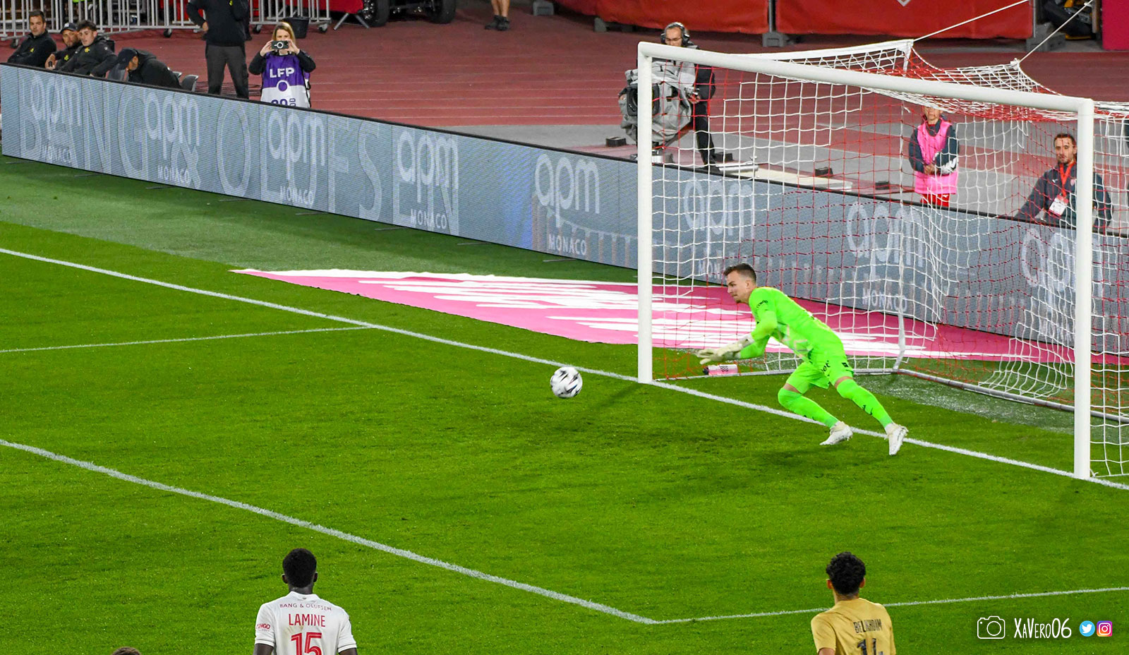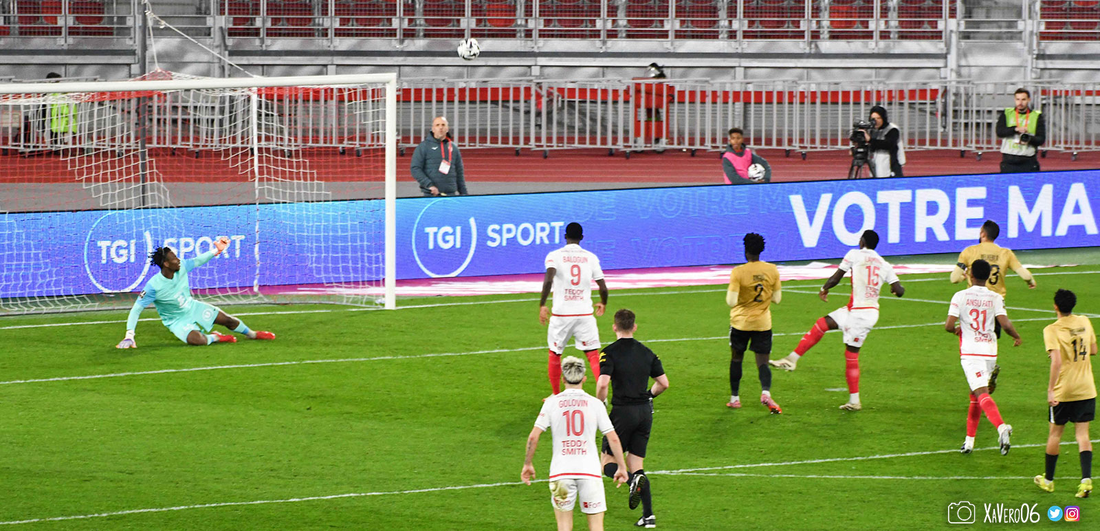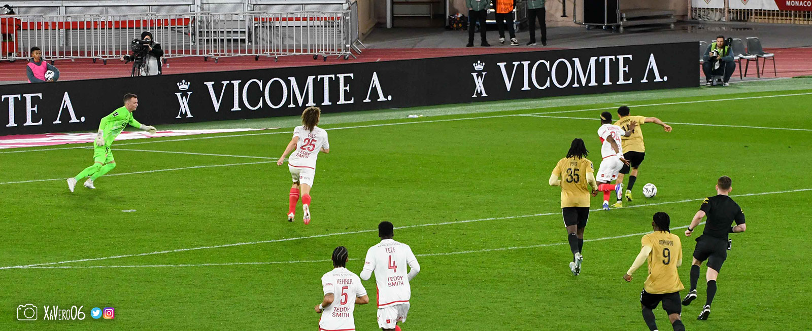 Au contraire, Monaco ouvre le score sur une tête de Folarin Balogun repoussée par Camara dans les jambes de l'américain qui prend la direction du but où était Pona, mais le ballon est encore dévié par le bout des doigts de Camara pour tromper son gardien (1-0, 57e), et accroît son avantage sur une frappe enroulée de Simon Adingra (2-0, 62e).