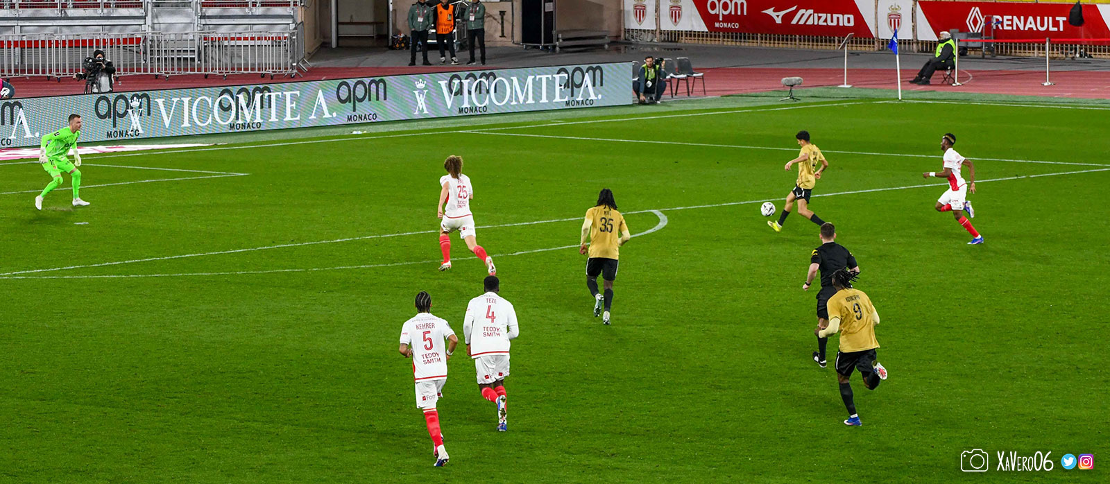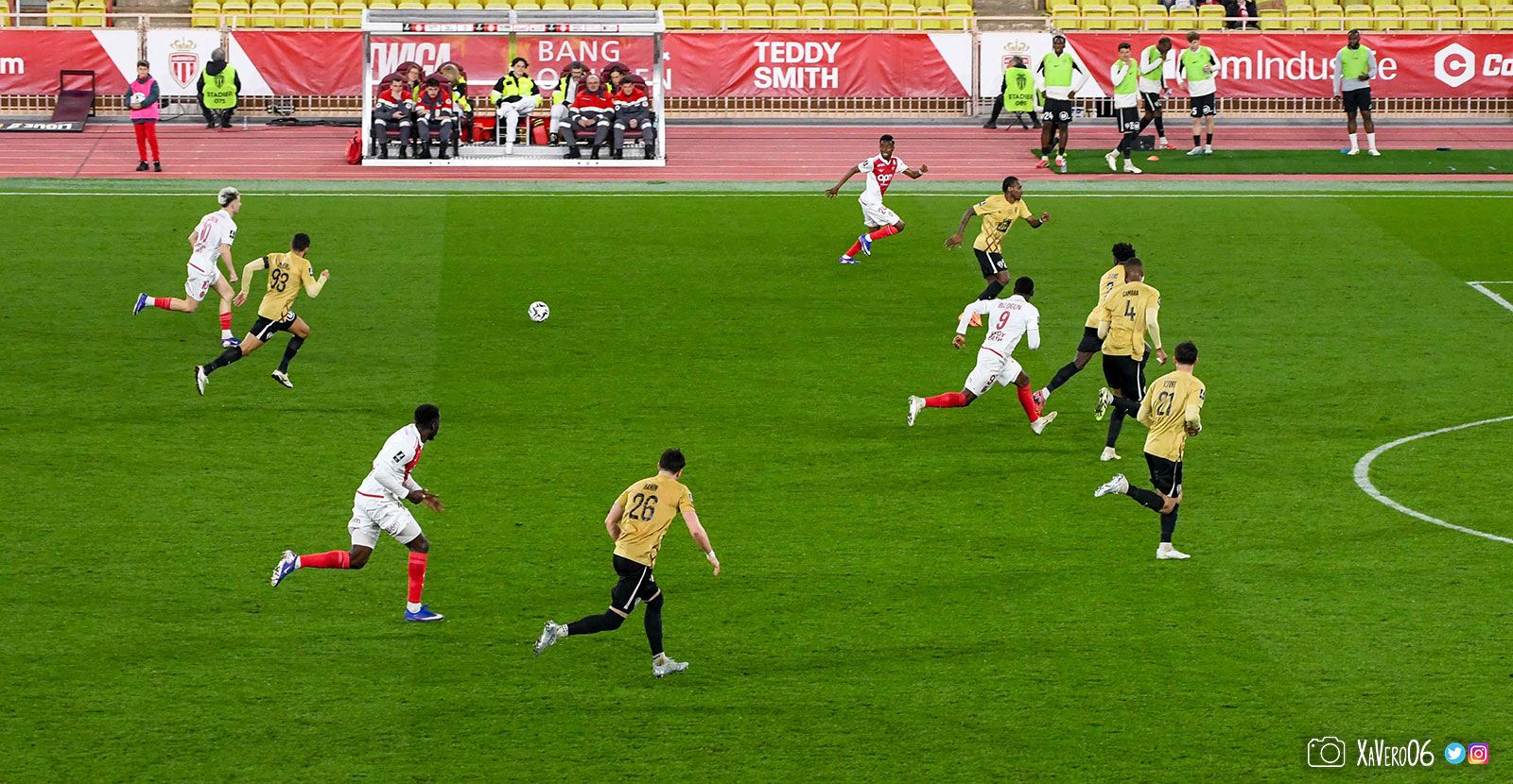 Sur le banc, pas de Stawiecki (21ème homme), mais Liénard, Mawissa, Nibombé, Vanderson, Akliouche, Idumbo, Adingra, Biereth, Brunner.