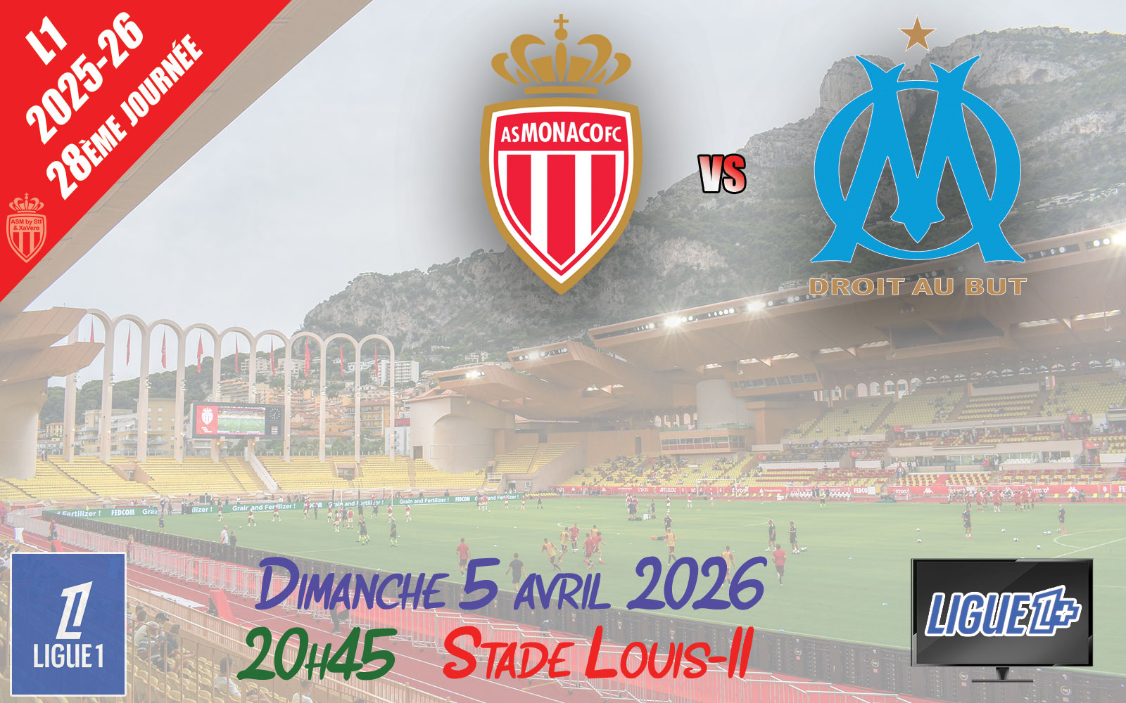 Pour la 28ème journée de Ligue 1, l'AS Monaco (6ème) reçoit l'Olympique de Marseille (3ème), avec l'objectif de reprendre son adversaire au classement car seulement 3 points les séparent.
